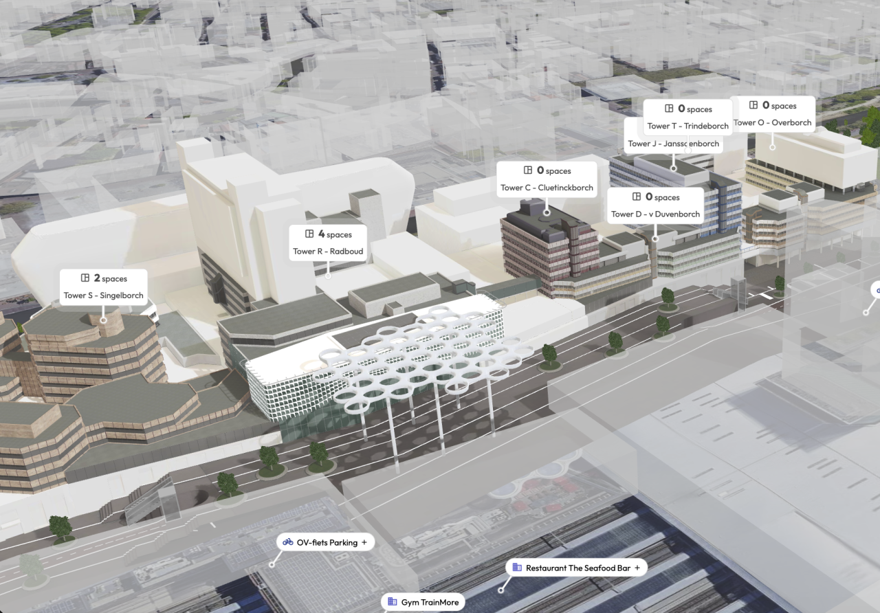 Met ons nieuwe 3D-model navigeer je door torens, verdiepingen en beschikbare meters. Je ziet renders van mogelijke indelingen. En krijgt een gevoel bij de mogelijkheden voor jouw kantoor.