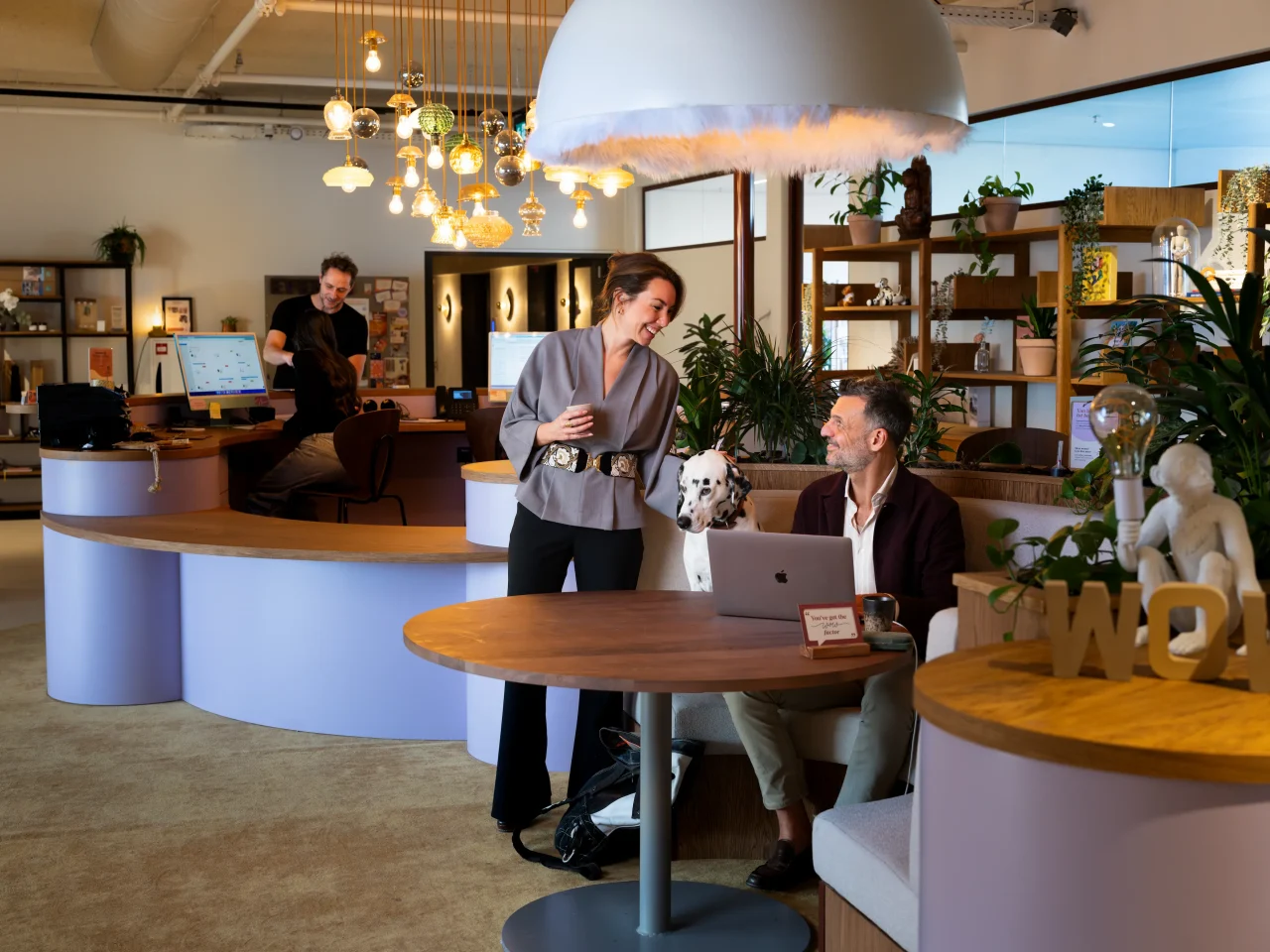 Oprichters Marcel Nicolaas en Esmee Keuren hebben een helder uitgangspunt: Wanneer mensen elkaar écht ontmoeten, ontstaan verbinding en samenwerking vanzelf. “We geloven in ontmoeten,” zegt Marcel. “Nieuwsgierig zijn. Meedenken. Delen. Lief zijn voor elkaar. Daar begint het.” Die filosofie voel je direct bij binnenkomst. Het is er warm en gezellig. Er wordt gelachen. Mensen wijzen elkaar de weg. Een dalmatiër kijkt je vriendelijk aan. En zomaar iemand vraagt of je koffie wilt. Welkom bij Wonders of Work (WoW). Een rustige wereld boven Hoog Catharijne. In een van de kantoorgebouwen van Connect Offices.